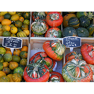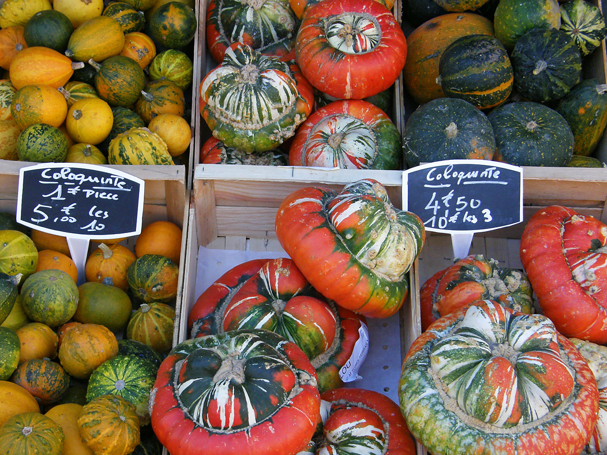 mit ihren vielen KäsesortenEine bunte Farbpalette mit Kürbisgewächsen